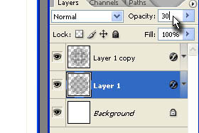 To je layer, ki predstavlja zadnjo stranico krogle. Določite temu layerju Opacity 30. |
