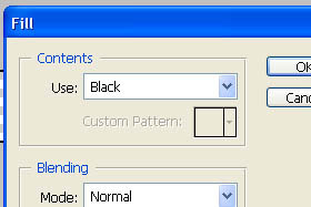 Kliknite na Edit in izberite Fill... V polju Use izberite Pattern in potem preko polja Custom Pattern določite vertikalo (ki ste jo prej ustvarili). Kliknite na gumb OK. |