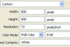 Kliknite na File in izberite New... V polje Width določite 800 pixels in Height 800 pixels. Velikost dokumenta lahko določite tudi poljubno. Background Contents določite White in kliknite na gumb OK. |