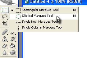 Držite z miško na orodju Rectangular Marquee Tooll (bližnjica je tipka M), da se vam prikažejo ostala orodja. |