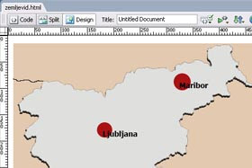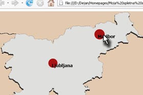 Jaz sem dodal sliko zemljevida Slovenije, kjer bom ustvaril spletno povezavo za vsako mesto posebej.