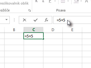 Jaz sem vpisal =5+5. Seveda pa lahko uporabite že neko ustvarjeno formulo, če želite.
