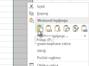 Kliknite na označeni stolpec z levim miškinim gumbom in izberite Prilepi (glej sliko).