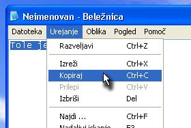 V nekaterih različicah Windows se kopiran tekst prilepi ob enkratnem desnem kliku na miški. |
