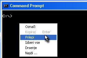 Prej kopiran tekst se je prilepil v Command Prompt okno.
