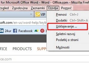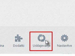 Kliknemo: novi zavihek oz. domov. V spodnji vrstici najdemo ikono: Usklajevanje. Ali pa gremo: orodja -> možnosti -> usklajevanje. |