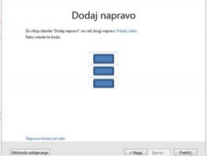Kodo iz okna (prepišemo iz računalniku katerega želimo sinhronizirati) katero se je pojavilo, ko smo izbrali: imam račun [slika5], vpišemo v tri tekstovna okenca.