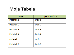 V prvo vrstico tabele dodajte poljuben tekst, ki bo prestavljal glavo tabele.