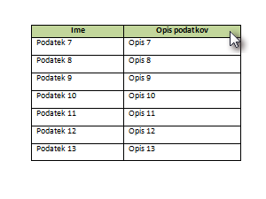 To lahko rešimo tako, da se postavimo v prvo vrstico tabele, ki predstavlja glavo naše tabele.