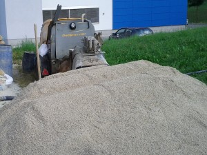 ![]() Ko je estriha dovolj, se ta enakomerno razporedi na ustrezno višino. |