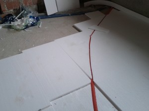Najprej je potrebno po tleh položiti izolacijo, ki predstavlja toplotno in tudi zvočno zaščito.