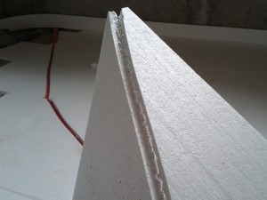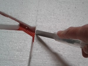 ![]() Nato lahko stiropor na mestu rezanju enostavno prelomimo in položimo na tla okoli cevi. |