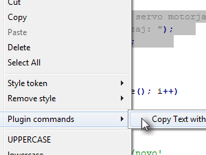 Nad označeno kodo kliknemo z desnim miškinim gumbom in izberemo Plugin commands -> Copy Text with syntax highlighting.