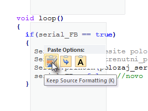 ... desni klik na miški ter izberemo pod opcije lepljenja (paste option) Ohrani obliko izvirnika (Keep source formatting).