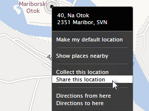 Kliknite na želeno lokacijo z desnim miškinim gumbom in izberite Share this location,