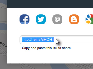 Odpre se malo okno, kjer lahko lokacijo objavite na socialna omrežja, pošljete preko e-pošte ....