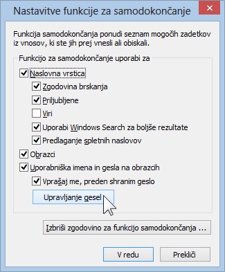 Prikazala se vam bodo vsa shranjena gesla in spletni naslovi.