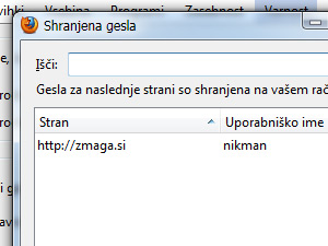 Prikažejo se vam vsa shranjena gesla za spletne strani.