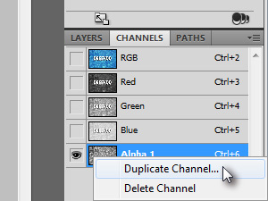 Sedaj pa kliknite na Alpha 1 kanal z desnim miškinim gumbom in izberite Duplicate Channel...