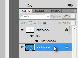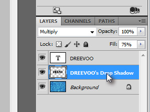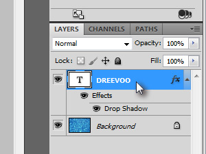 Photoshop bo razdelil tekstovni layer in senco. Potem pa označite layer z imenom Drop Shadow (glej sliko). |