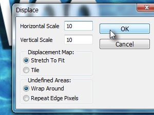 Kliknite zgoraj na Filter, Distort in izberite Displace...