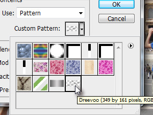 V novem oknu Use določite Pattern potem pa spodaj preko izbirnika določite prej ustvarjen vzorec in kliknite na gumb OK. |