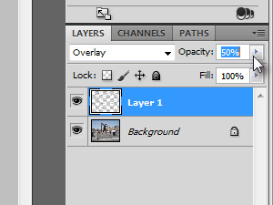 Layerju določite senčenje na Overlay in Opacity na okoli 50% (glej sliko).