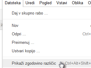 V meniju kliknite Datoteka -> Prikaži zgodovino različic