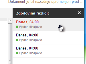 Na desni strani se vam bo prikazalo okno, kjer bodo navedena vsa urejanja dokumenta v preteklosti.