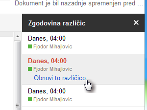 Če želite, pa lahko dokument obnovite v prejšnje stanje in sicer tako, da kliknete Obnovi to različico.