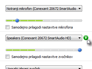 ![]() Kliknite ikono za predvajanje. Pri tem v mikrofon izgovorite nekaj besed. |