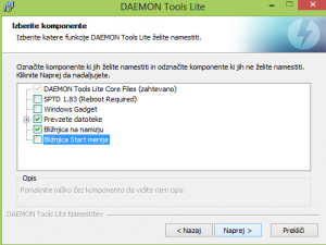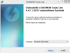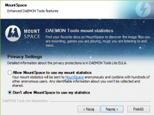 Pojavi se nam vprašanje, če želimo z anonimno statistiko izboljšati program Daemon Tools - Tukaj izberete sami in kliknete Naprej.