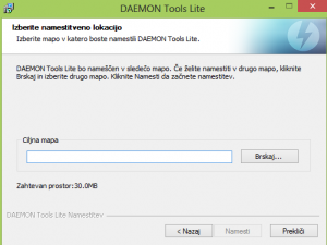 Izberemo kam naj program namesti in nato kliknemo Namesti.