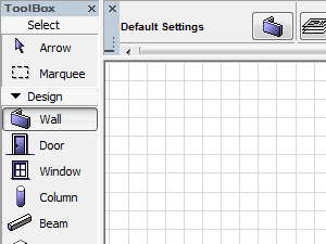 ARROW: Puščica za označevanje elementov MARQUEE: Orodje za označevanje večih elementov WALL: Orodje za risanje zidov DOOR: Orodje za vstavljanje vrat in vratnih odprtin WINDOW: Orodje za vstavljanje oken in okenskih odprtin COLUMN: Orodje za vstavljanje različnih stebrov BEAM: Orodje za vstavljanje poševnih stebrov