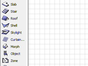 STAIR: Orodje za vstavljanje stopnic ROOF: Orodje za vstavljanje streh SHELL: Orodje za vstavljanje zapletenejših streh in drugih elementov SKYLIGHT: Orodje za vstavljanje strešnih oken CURTAIN WALL: Orodje za vstavljanje steklenih zidov MORPH: Orodje za vstavljanje zapletenejših elementov OBJECT: Orodje za vstavljanje različnih elementov ZONE: Orodje za merjenje in označitev določenega prostora