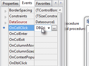 Izberite zavihek Events in dvokliknite OnCellClick. |