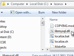 Za povezavo z MySql je potrebna knjižnica libmysql.dll, ki pa jo je potrebno presneti iz mape, v kateri je nameščen MySql strežnik. Nahaja se v podmapi lib.