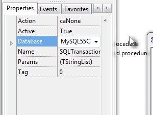 Izberite komponento SQLTransaction1.