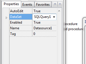 Izberite komponento SQLQuery1.