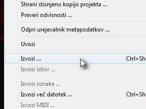 ![]() Ko končamo z delom, v meniju Datoteka kliknemo Izvozi. |