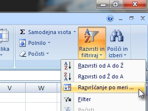 ![]() Desno zgoraj kliknite Razvrsti in filtriraj in izberite možnost Razvrščanje po meri ... |