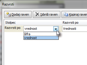 ![]() Najprej izberite stolpec, na podlagi katerega bomo sortirali. V njem naj se nahajajo obarvane vrednost. |