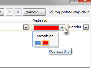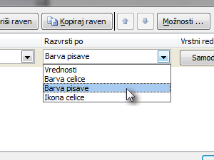 ![]() V meniju Vrstni red izberite še barvo, na podlagi katere želite opraviti sortiranje. |