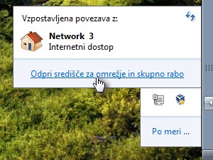 Kliknite na povezavo Odpri središče za omrežje in skupno rabo.