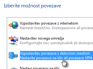 V novem oknu izberite možnost Vzpostavitev povezave z delovnim mestom.