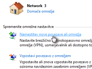 Izberite možnost Namestitev nove povezave ali omrežja.