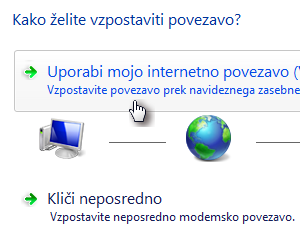 Zato izberite možnost Uporabi mojo internetno povezavo. |