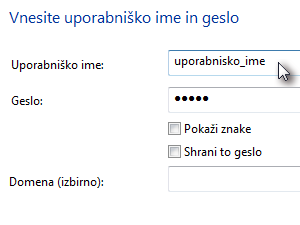 V naslednjem oknu vpišite še uporabniško ime in geslo, ki se bo uporabilo pri avtentikaciji na VPN strežniku.