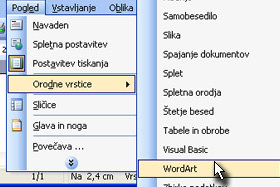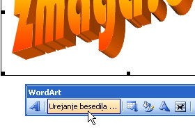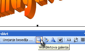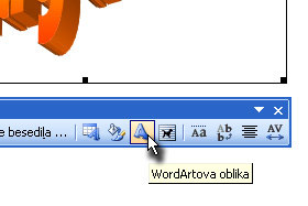 WordArt mora biti izbrano, ker bomo uporabljali orodja iz te orodne vrstice. |
