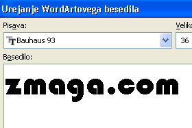 Jaz sem napisal zmaga.com, določil pisavo Bauhaus 93 v velikosti 36. Kliknite na gumb V redu, ko boste končali. |